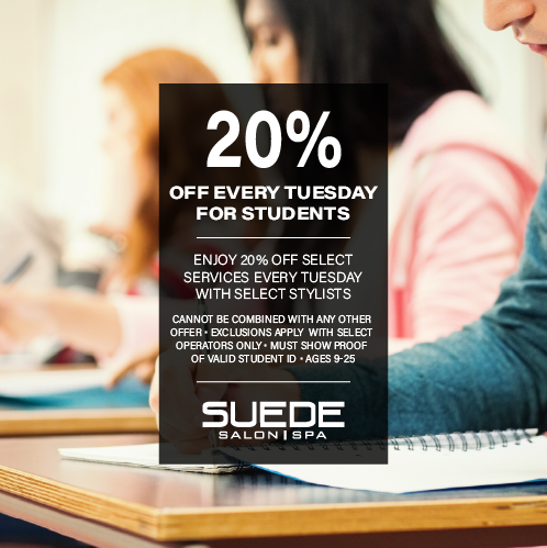 ENJOY 20% OFF SELECT SERVICES EVERY TUESDAY WITH PARTICIPATING OPERATORS AND VALID PROOF OF STUDENT I.D!
